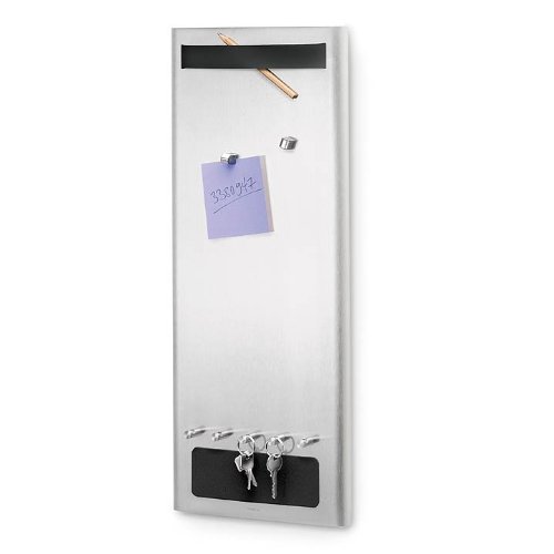blomus stainless steel magnetic board organizes your keys and notes. Band on top can hold notes, pens, sunglasses, etc. Rubber panel under the key holder prevents keys from scratching the board. Key holders are grooved to hold keys in place. Read more...