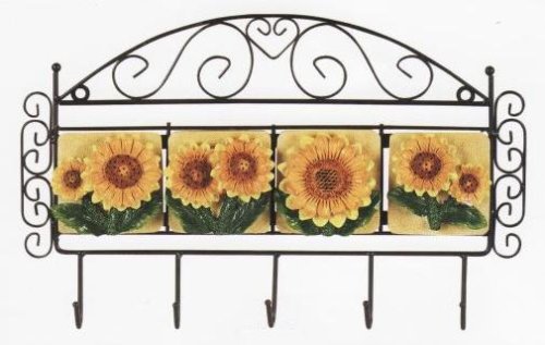 SUNFLOWER 3-D 4 Tile Horizontal Metal Wall Hanger Key Hook Towel Rack *NEW*! Review